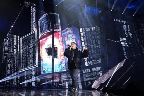 以歌詞元素布局畫面輔助中央色彩化處理的視覺元素,縱深穿梭制造視覺沖擊感。