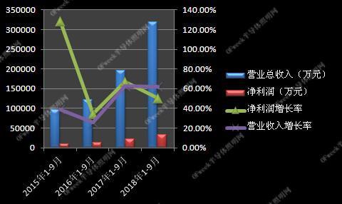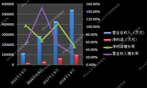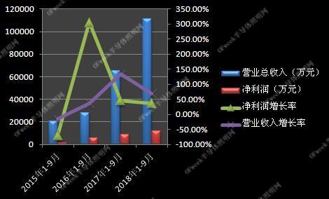 2018年10月22日公告,公司前三季度營收為11.1億元,同比增長69.31%;凈利為1.2億元,同比增長37.46%。