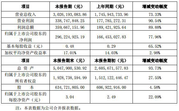 公司實(shí)現(xiàn)利潤(rùn)總額為35,966.72萬(wàn)元,較2016年增長(zhǎng)89.88%;歸屬于上市公司股東的凈利潤(rùn)為29,622.49萬(wàn)元,較2016年增長(zhǎng)77.96%。
