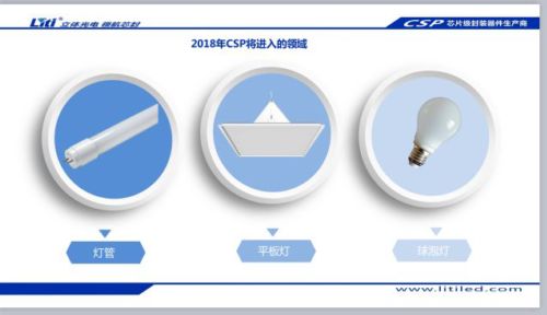 中山市立體光電科技有限公司總經(jīng)理程勝鵬表示,CSP走進通用照明市場是遲早的一步。通用照明市場前期也開始切入一些細分領域。由于體積小,可以發(fā)揮巨大想象,有可調(diào)色溫的COB和SMD,這兩塊逐漸會成為大家追逐的方向。2018年會陸陸續(xù)續(xù)跟相關企業(yè)推出進入通用照明市場的產(chǎn)品。