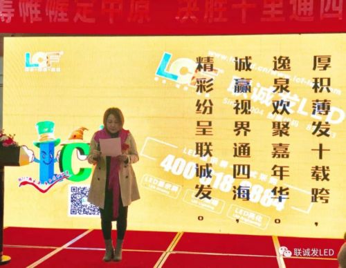 聯(lián)誼會上,聯(lián)誠發(fā)創(chuàng)始人龍平芳女士對遠道而來的嘉賓及客戶朋友表示了熱烈的歡迎,同時向與會人員透露:2018年,集團正積極執(zhí)行“誠贏視界”戰(zhàn)略,全年渠道銷售目標金額3個億,將在全國范圍內(nèi)挑選6到8個優(yōu)秀省級代理商進行重點支持;總部將加強對渠道建設的宣傳,如模組尺寸統(tǒng)一、款到24小時出貨等。目前,聯(lián)誠發(fā)控股子公司聯(lián)順達科技500000張LED模組月產(chǎn)能,將能對渠道鋪設打開便利之門。希望大家能抓住機遇,發(fā)揮橋梁和紐帶作用,聯(lián)合四海賓朋,讓聯(lián)誠發(fā)渠道商擰成一股繩,搏盡一份力,狠下一條心,共圓一個夢。以規(guī)范的制度、快捷的流程,標準的產(chǎn)品、精細的服務打造有聯(lián)誠發(fā)特色的渠道招商環(huán)境,通過代理商對客戶的引導及完善的售后服務來深化品牌,從根本上讓跟隨聯(lián)誠發(fā)的渠道商有效益,有信譽,有尊嚴,有成就。