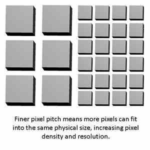 ●較小的像素間距代表較高的像素密度和較高的分辨率