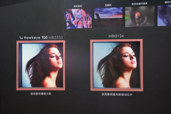 除此之外,聚積科技展示了其最新MBI5153鷹眼方案,與其基本款MBI5124驅(qū)動(dòng)芯片相比,可有效“覆蓋”LED燈珠壞點(diǎn),避免一個(gè)燈珠壞死導(dǎo)致的整個(gè)畫面出現(xiàn)過于嚴(yán)重的損壞。