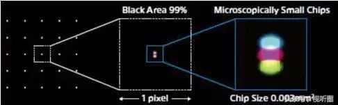 對于小間距LED顯示產品,SMD表貼技術被認為是第一代產品、COB技術則是第二代的代表(目前剛剛進入行業(yè)元年),而索尼黑彩晶為代表的“超精細”LED顆粒技術的產品,則是真正代表Micro-LED這種未來趨勢的“劃時代”的第三代LED顯示技術。
