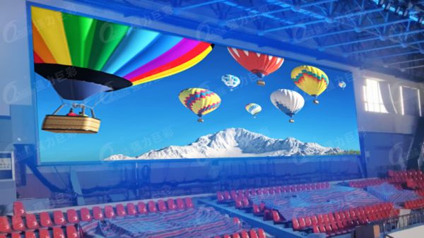 在體育館,強(qiáng)力巨彩室內(nèi)全彩大屏超大可視角度同步直播精彩賽事,滿足全方位觀看