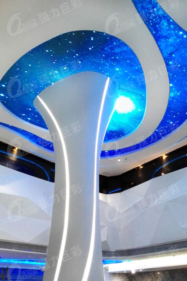 在城市廣場(chǎng),強(qiáng)力巨彩室內(nèi)全彩大屏造型別致、顯示驚艷,廣告效應(yīng)分分鐘爆表