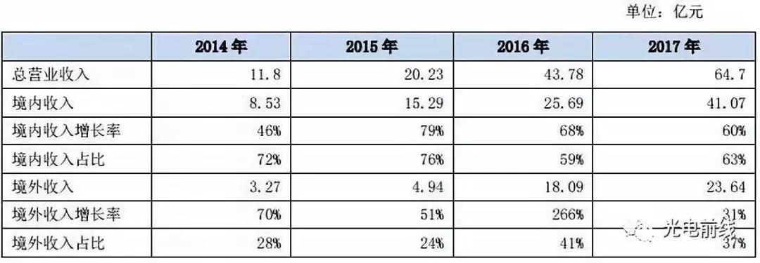 海外市場實現(xiàn)簽單約14.62億元,同比增長約54%。北美市場及拉美市場簽單增長幅度分別達(dá)到約90%與74%;亞太市場同比增長約60%。另外,艾比森在2017年還加大對中國市場的關(guān)注與投入,實現(xiàn)了3.08億led顯示屏簽單,同比增長近50%。