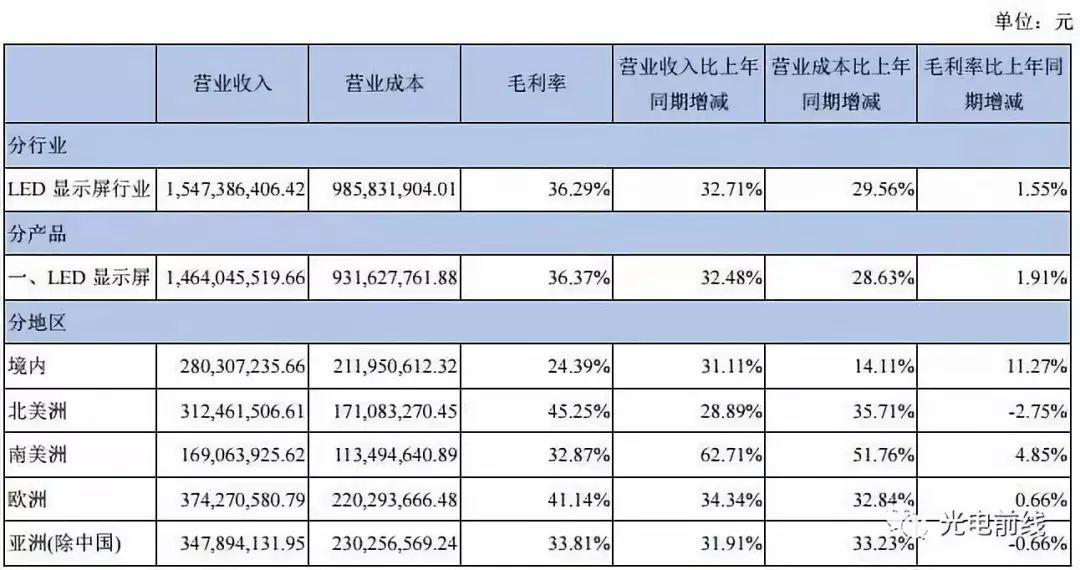 2017年,艾比森實現(xiàn)led顯示屏銷售收入14.64億元,同比增長約32%,實現(xiàn)總簽單約17.7億元,同比增長約52%。