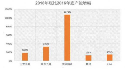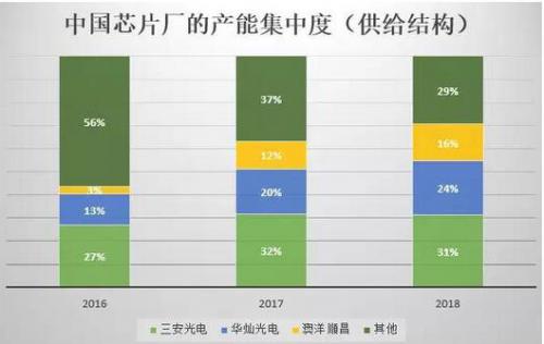 預(yù)計(jì)2018年三安光電、華燦光電和澳洋順昌三家廠商將占據(jù)71%的大陸LED芯片產(chǎn)能。