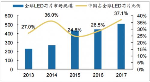 中國(guó)在全球LED芯片市場(chǎng)中占比逐步提升