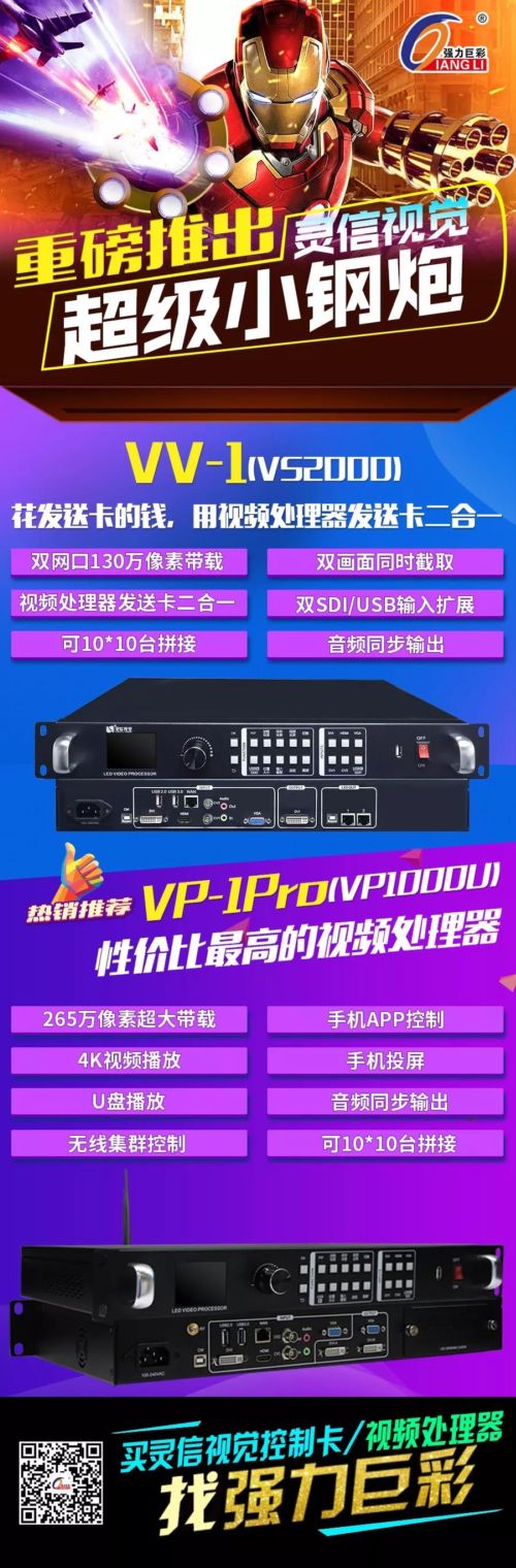 值得一提的是,秉持“用戶至上,美麗體驗(yàn)”的宗旨,強(qiáng)力巨彩攜手靈信視覺重磅推出“超級(jí)小鋼炮”,最有誠意的視頻處理器發(fā)送卡二合一VV-1(VS2000),這款產(chǎn)品有著無比強(qiáng)大的優(yōu)異性能,雙網(wǎng)口130萬像素帶載,雙畫面同時(shí)截取,可10*10臺(tái)拼接,音頻同步輸出等優(yōu)點(diǎn)。你還在等什么?趕緊行動(dòng)吧!買靈信控制卡、視頻處理器,找強(qiáng)力巨彩!詳情請(qǐng)咨詢,各辦事處、省級(jí)品牌運(yùn)營(yíng)商、千店服務(wù)商。
