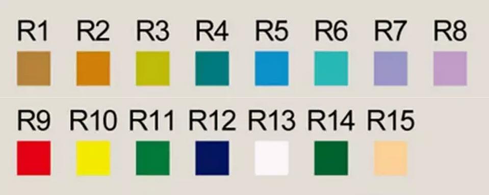 國際照明委員會(CIE)將太陽光的顯色指數(shù)定為100,并規(guī)定了15個測試顏色,用R1-R15分別表示這15個顏色的顯示指數(shù)。當(dāng)把一個光源與規(guī)定的參考光源進行比較時,指數(shù)值為100是最好的。