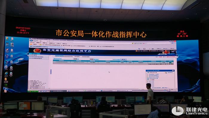 由聯(lián)建光電打造的該套LED小間距大屏幕顯示系統(tǒng)能對各類復(fù)雜信息進(jìn)行實時顯示,并可實時切換不同界面,為指揮中心的決策、指揮、調(diào)度提供及時、準(zhǔn)確的信息,是公安指揮中心的“黑科技”。