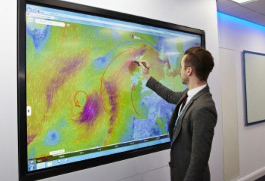 除了視頻墻之外,弧型機(jī)柜中還安裝了一個(gè)交互式86英寸觸摸顯示屏,提供可實(shí)時(shí)注釋、可通過(guò)視頻會(huì)議鏈路共享的內(nèi)容。視頻墻配置通過(guò)主視頻處理器進(jìn)行管理,提供多種選項(xiàng),包括在視頻墻上的3x3部分顯示16:9全屏內(nèi)容、任何屏幕上的單個(gè)內(nèi)容,或是以16:9寬屏格式顯示任意數(shù)量的窗口的內(nèi)容。