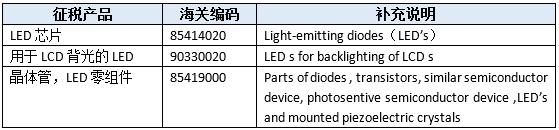 在LED產(chǎn)業(yè)鏈中,對美出口金額較大的實則是下游應(yīng)用產(chǎn)品,如照明產(chǎn)品94054090、94051000,顯示類的85312000等,但上述品項均不在本次清單的加稅范圍內(nèi)。