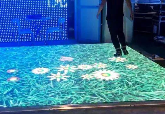 在實際項目中,LED地磚極具視覺沖擊力。借助紅外感應(yīng),它可以跟蹤人的運動軌跡,能夠跟隨人體的活動呈現(xiàn)即時的畫面效果,從而可以實現(xiàn)諸如演員與觀眾走過,腳下出現(xiàn)水波紋、花朵開放等效果。