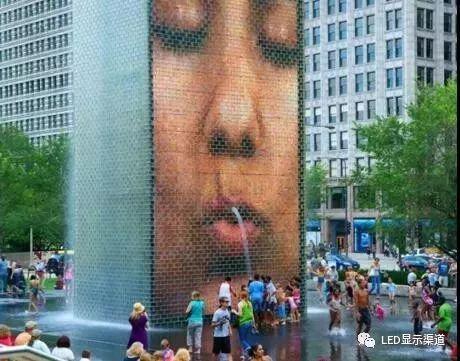 比如芝加哥的皇冠噴泉地標(biāo)廣告,兩側(cè)15米高的led顯示屏,可展示內(nèi)部臉部的數(shù)位影像。這些人臉有時(shí)候微笑,有時(shí)候就會(huì)朝外面“吐水”。這種傳統(tǒng)與現(xiàn)代藝術(shù)的交織詮釋了這個(gè)項(xiàng)目的成功。