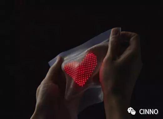 這款新開發(fā)的“皮膚顯示”在輕薄、伸縮自由的橡膠基板上以相等間隔埋入了16*24個微型LED。此款橡膠基板的厚度約為1mm,橡膠基板的反復收縮(收縮率45%)不會影響其電氣、機械的特性。據(jù)說,即使直接貼在皮膚上,也不會妨礙人體行動,同時也減輕了人們著裝時的負擔。