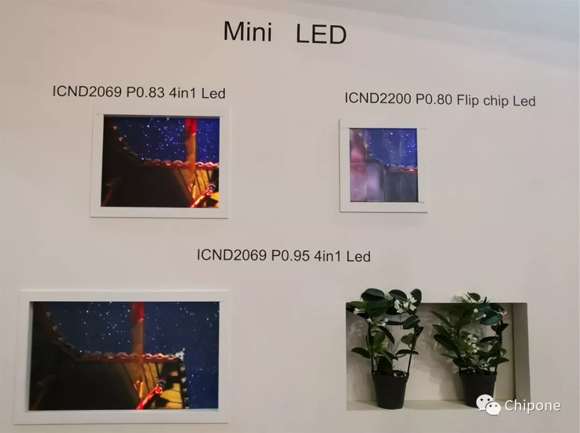 在Mini LED區(qū),三款點間距小于1.0的產(chǎn)品表現(xiàn)了當前行業(yè)前沿制造能力。 ICND2069+ICND2019是目前業(yè)內(nèi)唯一成熟量產(chǎn)的共陰極MiniLED解決方案,擴展至1-64掃可以完成低至0.8mm點間距的產(chǎn)品設計,是當前Mini四合一LED的最佳搭配。