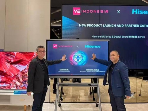 印尼作為亞太市場(chǎng)的重點(diǎn)區(qū)域,此前,海信商用顯示已在印尼市場(chǎng)提前布局,持續(xù)深耕。今年3月份,海信印尼公司與當(dāng)?shù)刂膶I(yè)視聽渠道商V2公司聯(lián)合舉辦新品發(fā)布會(huì),多家當(dāng)?shù)刂襟w進(jìn)行報(bào)道。發(fā)布會(huì)上,正式發(fā)布海信Vision Hub智慧平板、海信Vision Flip數(shù)字標(biāo)牌新品等,雙方共同確認(rèn)了高達(dá)數(shù)百萬(wàn)美金的專業(yè)顯示設(shè)備合作方案,將攜手在印尼市場(chǎng)持續(xù)發(fā)力,合作共贏。