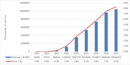 圖1 全球Micro-LED產(chǎn)值預(yù)測(cè)(來(lái)源Omdia)