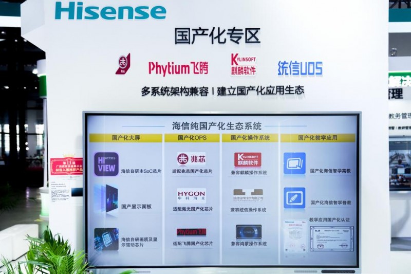 值得一提的是,海信還在現(xiàn)場打造國產(chǎn)化展區(qū),攜純國產(chǎn)化觸控顯示器亮相,引來諸多圍觀。據(jù)介紹,海信純國產(chǎn)化觸控顯示器基于自研SOC芯片,并與統(tǒng)信、麒麟等主流操作系統(tǒng)實現(xiàn)深度兼容,確保了全鏈路國產(chǎn)化與多系統(tǒng)之間的無縫銜接。該產(chǎn)品搭載專業(yè)智感護眼系統(tǒng),在采用全貼合工藝的基礎(chǔ)上,更搭載無頻閃技術(shù)、智能觸感護眼技術(shù)、軟件護眼模式等,呼呼師生用眼健康。